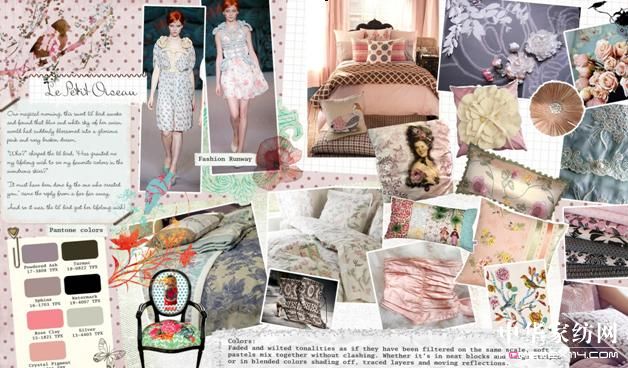 玫瑰花般柔和安静的色彩、柔软的天鹅绒饰品、精致的蕾丝及花朵图案、雕刻出的蜡烛以及覆盖着锦缎的宝座。这一系列充斥着春天的芬芳气息,充分展现18世纪女性优雅妩媚的特征。精致柔和的圆形轮廓,搭配平和的线条,是新巴洛克的装饰风格的完美演绎。蕾丝的柔美气质结合面料的光泽,把温馨与甜蜜的感觉营造到了极致。