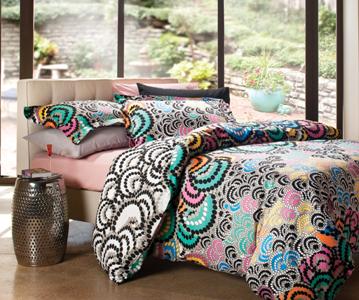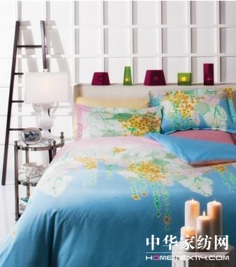 本季一共推出印花款16个,此系列产品全部做成床单被套四件套套件,并且床单尺寸都达到标准的Q和K的尺寸,以方便成套的销售,花型图案方面依然延续AUSSINO一贯的色彩缤纷的花朵和流行曲线等图案,并配以一些本季流行的印花蕾丝等新鲜元素,本系列面料都采用260根全棉缎纹,活性印染工艺,所有工序齐全,手感舒适,光泽感强。