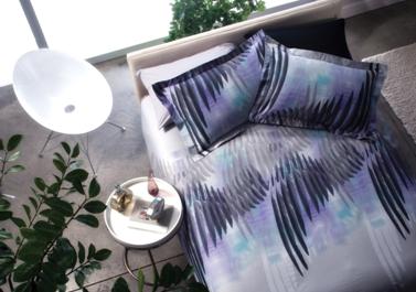 采用127×79 260根全棉缎纹活性印花,手感柔软,光泽感强,独特的羽毛花型设计,看似简单,在印染工艺上要求特别之高,每一根羽毛运用到多种不同的颜色渐变和晕染,使每根羽毛看起来活灵活现,浅灰色的底板上还有些若隐若现的底纹,更使此款看起来时尚中不失优雅。